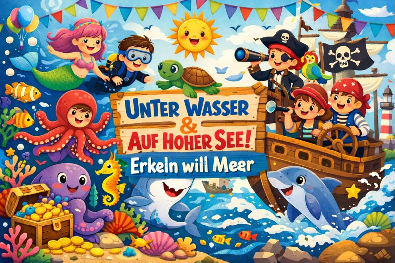 Freut Euch auf einen lustigen Nachmittag unter dem Motto „Unter Wasser und auf hoher See – Erkeln will Meer!“